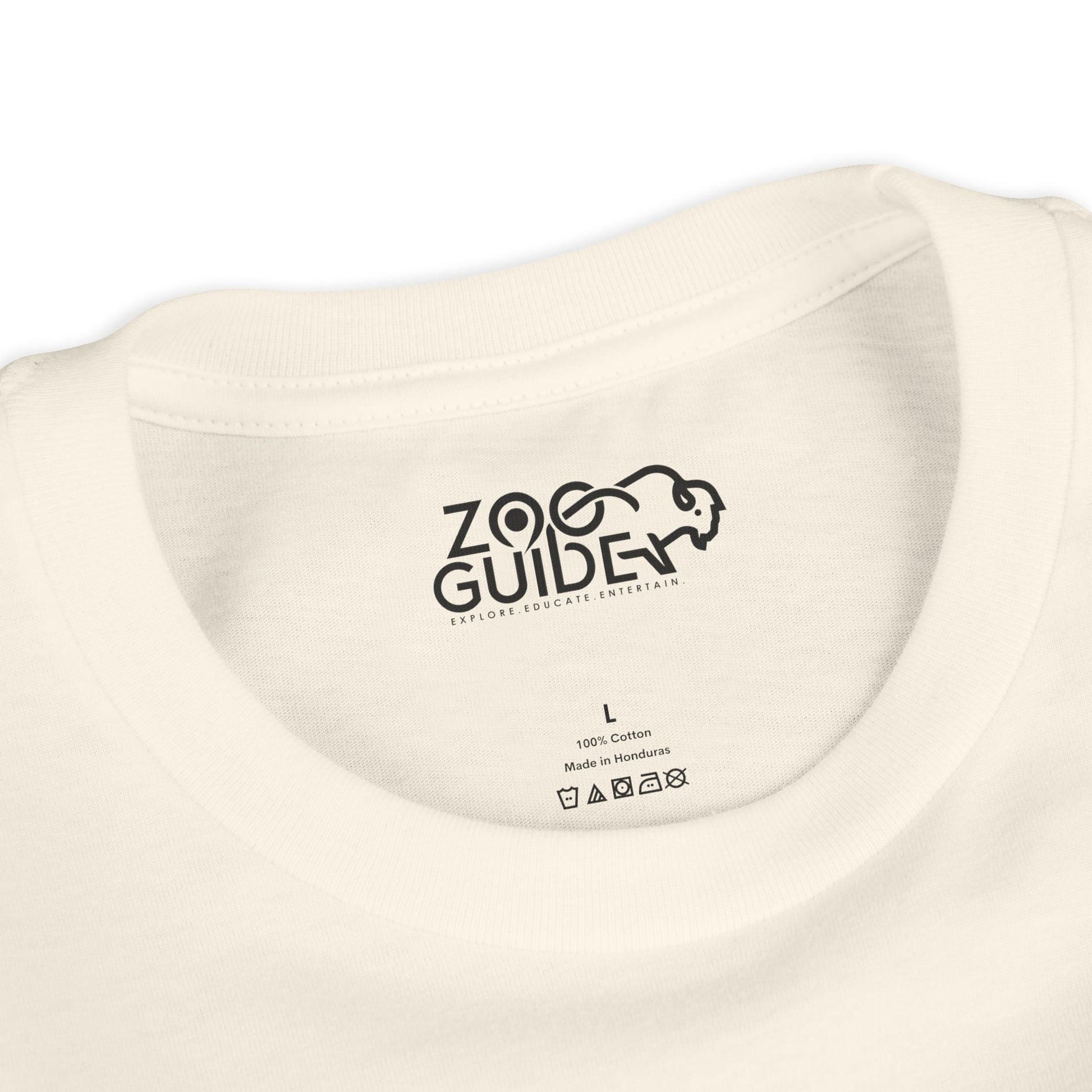 This T-Shirt is a stylish and comfortable addition to any animal lover's wardrobe. All designs are custom, one of a kind designs by Zoo Guide™. All animal designs are custom hand sketched and hand colored designs. All T-Shirts are made with extra lightweight, airlume-combed, ring-spun cotton, this tee is incredibly soft to the touch and perfect for all-day wear. The retail fit and crew neckline provide a modern and versatile style that is suitable for casual outings or playdates at the zoo. Perfect for young nature enthusiasts or as a fun gift for birthdays or holidays.
